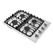 Cosmo 30" Gas Cooktop in Stainless Steel, 4 Sealed Burners, 18,000 BTU Burner, Cast-Iron Grates, COS-DIC304