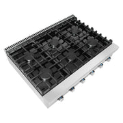 Cosmo 36" Gas Cooktop, 6 Sealed Burners, 18,000 BTU Dual Ring Burner, Cast Iron Grates, COS-GRT366