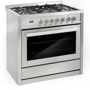 Cosmo 36" Stellar Collection 3.8 cu. ft. Freestanding Dual Fuel Range in Stainless Steel, True Convection, 5 Sealed Burners, COS-F965NF
