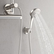 The Forno Acqua AcquaSPA 6 Function Overhead Shower, 5 Function Handheld, 3 Function AcquaFALL Body Jet transforms compact bathrooms into personal retreats. This complete shower system combines a U.S.-patented 6-function rain shower head, ergonomic 5-function handheld with 60-inch hose, and an innovative 10-1/2 inch waterfall body jet for full-body or targeted hydrotherapy. The brushed nickel finish adds modern elegance while easy-clean silicone nozzles ensure low maintenance. Designed for apartments, guest suites, and small bathrooms, this space-saving shower panel system connects to standard half-inch plumbing without renovation. The 7-way diverter lets you customize your experience, while the powerful 2.5 GPM flow rate ensures satisfying performance. Universal compatibility and DIY-friendly installation make upgrading to spa-like luxury simple and affordable, delivering premium features that fit any compact layout.