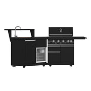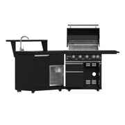 Forno All’Aperto 62,600 BTU BBQ, 3 Stainless Steel Burners, Infrared Burners, Sink Module, Black Sintered Stone Countertops, Bar and Beverage Center
