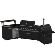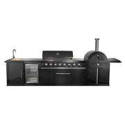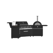 The Forno All'Aperto 87,600 BTU BBQ with 4 Stainless-Steel Burners with Infrared Burners & Side Burner, Sink Module with Black Sintered Stone Countertops, Gaz Pizza Oven, Bar & Beverage Center transforms your backyard into a complete outdoor kitchen. This outdoor kitchen island combines a high-performance gas grill with a dedicated pizza oven, sink module, and beverage center for unmatched versatility. The stainless steel burners and ceramic infrared technology deliver precise heat control across the generous cooking surface, while the black sintered stone countertops provide durable workspace. Whether you're grilling steaks, baking pizzas in the 34,000 BTU gas pizza oven, or preparing sides on the cast iron side burner, this outdoor cooking station handles it all. The powder-coated aluminum construction withstands the elements, and integrated lighting ensures you can cook and entertain well into the evening. Perfect for homeowners seeking a premium outdoor grill and entertainment center in one comprehensive package.