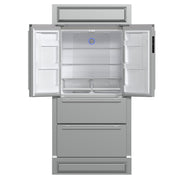The Forno Moena 36-Inch Built-In French Door Refrigerator in Stainless Steel delivers premium performance and sophisticated style for modern kitchens. This built-in French door refrigerator combines a spacious 19.2 cu. ft. capacity with advanced features like an inverter compressor for quiet, energy-efficient cooling. The frost-free multi-airflow system maintains consistent temperatures throughout both the fresh food and freezer compartments, while the automatic ice maker produces up to 4 pounds of ice daily. With see-through drawers, adjustable glass shelving, and generous door storage, organization is effortless. The decorative grill extends this 36 inch refrigerator to 40 inches wide, creating a seamless built-in look. ENERGY STAR certification ensures lower energy costs while the LED touch panel and high-efficiency lighting provide modern convenience. Perfect for homeowners seeking a stainless steel refrigerator that combines form, function, and superior food preservation.