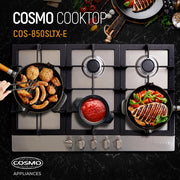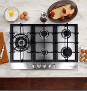 Cosmo 30" Gas Cooktop in Stainless Steel, 5 Burners, Cast Iron Grates, 850SLTX-E