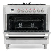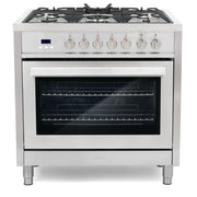 Cosmo 36" Stellar Collection 3.8 cu. ft. Freestanding Dual Fuel Range in Stainless Steel, True Convection, 5 Sealed Burners, F965