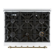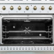 Forno Antico 36" Freestanding Dual Fuel Range in White, Brass Burners, 6 Burners, with Antique Brass Handles, FFSGS6113-36WHT