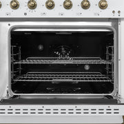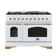 Forno Antico 48" Freestanding Dual Fuel Range in White, 8 Sealed Burners, Double Oven, Griddle, with Antique Brass Accents, FFSGS6113-48WHT