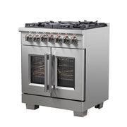 Forno Capriasca 30" Freestanding French Door Dual Fuel Range in Stainless Steel, True Convection, Brass Burners, FFSGS6387-30