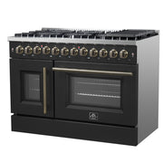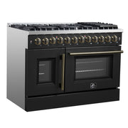 Forno Galiano 48" Freestanding French Door Dual Fuel Range in Black, Double Oven, 8 Burners, with Antique Brass Handles, FFSGS6356-48BLK