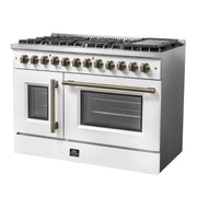 Forno Galiano 48" Freestanding French Door Dual Fuel Range in White, Double Oven, 8 Burners, with Antique Brass Handles, FFSGS6356-48WHT