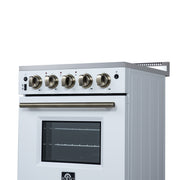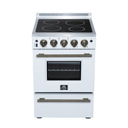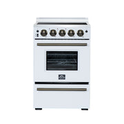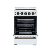Forno Loiano 24" Freestanding Electric Range in White, with 4 Element Burners, Storage Drawer and Air Fryer Kit, with Antique Brass Handles, FFSEL6069-24WHT