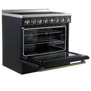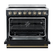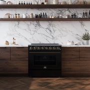 Forno Paolo 36" Freestanding Electric Range in Black, True Convection, 6 Burners, with Antique Brass Handles, FFSEL6011-36BLK