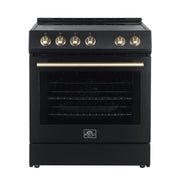 Forno Leonardo Espresso 30" Freestanding Electric Range in Black, True Convection, 4 Radiant Elements, FFSEL6012-30BLK: