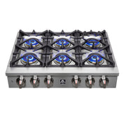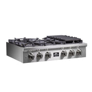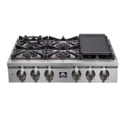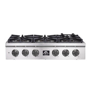 Forno 36" Pro-Style Gas Rangetop, 6 Sealed Brass Burners, Cast-Iron Grates, Griddle, FCTGS5751-36