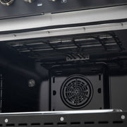 The Forno Galiano 36-inch Dual Fuel Range in Black & Antique Brass Design combines professional performance with striking aesthetics for the modern kitchen. This forno 36 dual fuel range features six sealed burners delivering a combined 83,000 BTU, including a powerful 20,000 BTU dual-ring burner that transitions seamlessly from high-heat searing to gentle simmering. The spacious 5.36 cu.ft. true convection oven harnesses 6,300 watts of power to ensure even baking, roasting, and broiling results. Heavy-duty cast iron grates provide exceptional stability, while the deep recessed black enamel surface simplifies cleanup. Elegant antique brass knobs and handles complement the sleek black finish, creating a bold focal point. Complete with two electroplated oven racks, an LP conversion kit, adjustable legs, and Forno's comprehensive 2-year warranty, the Forno Galiano (FFSGS6156-36BLK) delivers unmatched versatility and style for discerning home chefs.