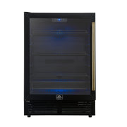 Forno Frescolino 24" Freestanding Beverage Cooler in Black, 188 Can Capacity, Triple-Layer Anti-UV Glass, Antique Brass Handles, FWCDR6665-24BLK