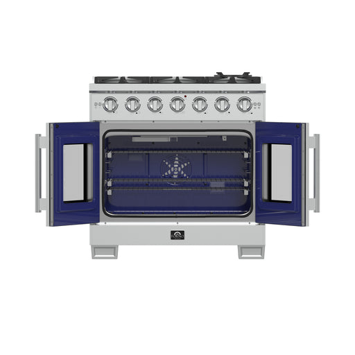 Forno Capriasca 36" Freestanding French Door Gas Range, 6 Burners, Brass Burners, FFSGS6460-36