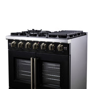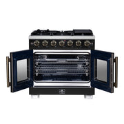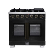 Forno Capriasca 36" Freestanding French Door Gas Range in Black, 6 Burners, Brass Burners, FFSGS6460-36BLK