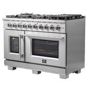 Forno Capriasca 48" Freestanding French Door Gas Range in Stainless Steel, Double Oven, 8 Burners, FFSGS6460-48