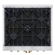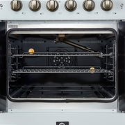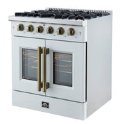 Forno Galiano 30" Freestanding French Door Gas Range in White, 5 Burners, Convection Oven, with Antique Brass Handles, FFSGS6444-30WHT