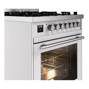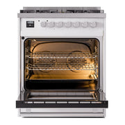 Introducing the new ilve 30 dual fuel range, a combination of professional style and innovative functionality to elevate your kitchen. This range features sealed burners equipped with total black brass burners with non-stick nanotechnological coating, 4 cu. ft. dual oven capacity, and a soft closing door system, bringing premium performance to your home cooking.