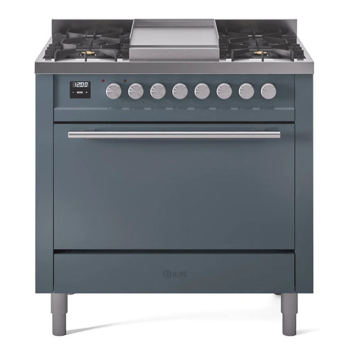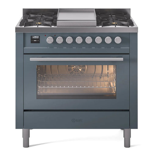 View full detailsILVE Professional Plus II 36" Dual Fuel Freestanding Range in Blue Grey with Stainless Steel Trim, UP36FQMPBGLP