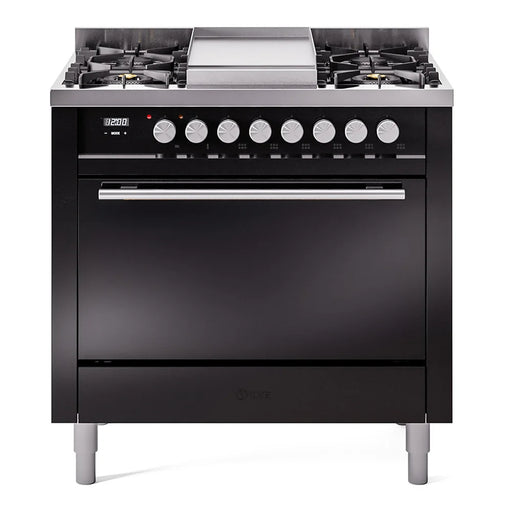 View full detailsILVE Professional Plus II 36" Dual Fuel Freestanding Range in Glossy Black with Stainless Steel Trim, UP36FQMPBK