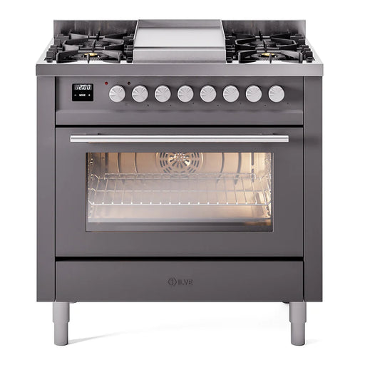 View full detailsILVE Professional Plus II 36" Dual Fuel Freestanding Range in Graphite Matte with Stainless Steel Trim, UP36FQMPMGLP