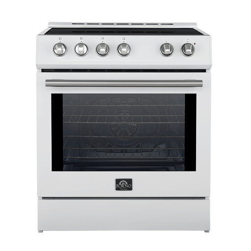 View full detailsForno Donatello Espresso 30" Freestanding Induction Range in White, True Convection, Air Fry, Stainless Steel Handles, FFSIN0905-30WHT