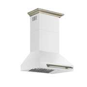Forno Aria 30" 600 CFM Wall-Mounted Range Hood in White with Antique Brass Handles, FRHWM5095-30WHT