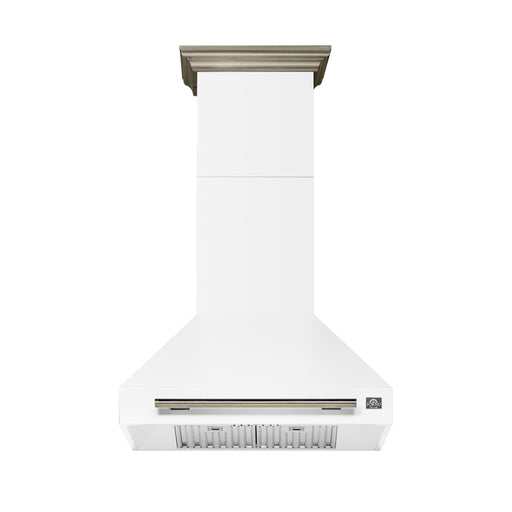 View full detailsForno Aria 30" 600 CFM Wall-Mounted Range Hood in White with Antique Brass Handles, FRHWM5095-30WHT