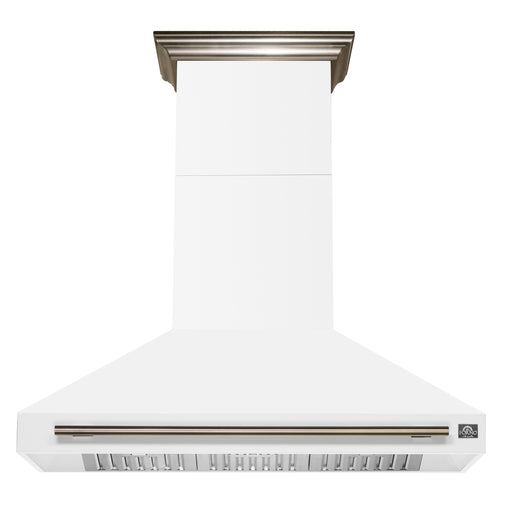 Forno Aria 48" 1200 CFM Wall-Mounted Range Hood in White with Antique Brass Handles, FRHWM5095-48WHT