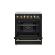 Forno Paolo 30" Freestanding Electric Range in Black, True Convection, 5 Burners, with Antique Brass Handles, FFSEL6011-30BLK