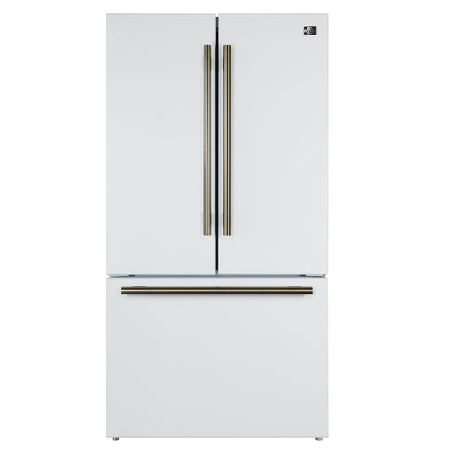 View full detailsForno Rivello 36" Freestanding French Door Refrigerator in White with Internal Water Dispenser, with Antique Brass Handles, FFFFD1783-36WHT