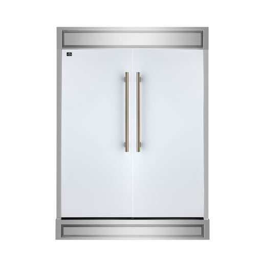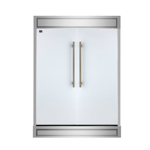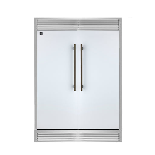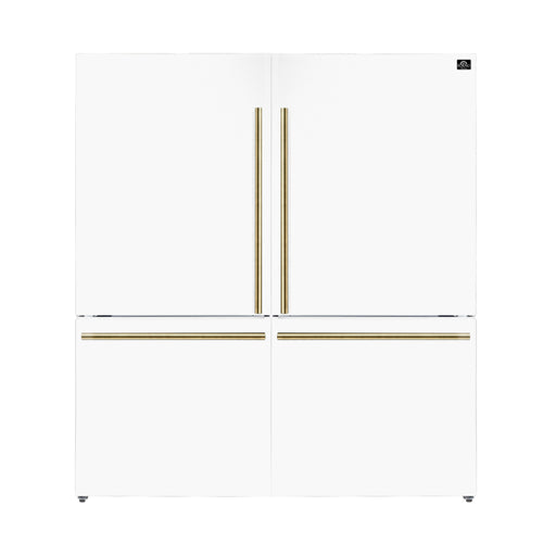 Forno Maderno 60" Freestanding Convertible Refrigerator/Freezer in White, 27.2 cu.ft., Dual Inverter Compressors, with Antique Brass Handles, FFFFD1722-60SG-WHT