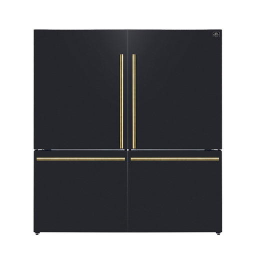 Forno Maderno 60" Freestanding Refrigerator/Freezer in Black, 27.2 Cu.Ft. Capacity with Modern Trim and Antique Brass Handles, FFFFD1722-60MG-BLK