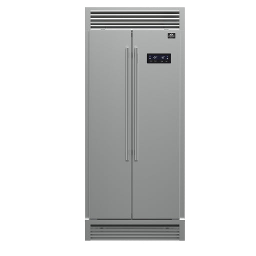 Forno Salerno 33" Built-in Side-by-Side Refrigerator in Stainless Steel, 15.6 cu.ft. with Modern Decorative Grill, FFRBI1805-37MG