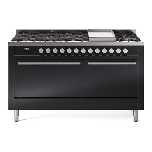 View full detailsILVE Professional Plus II 60" Dual Fuel Freestanding Range in Glossy Black with Stainless Steel Trim, UP60FQMPBKLP