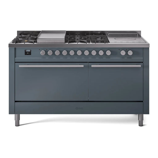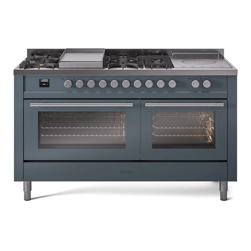 View full detailsILVE Professional Plus II 60" Dual Fuel Freestanding Range in Blue Grey with Stainless Steel Trim, UP60FSQMPBGLP