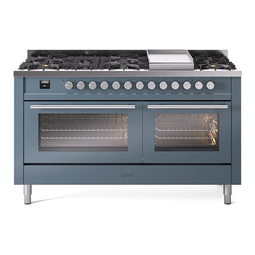 View full detailsILVE Professional Plus II 60" Dual Fuel Freestanding Range in Blue Grey with Stainless Steel Trim, UP60FSWMPBGLP