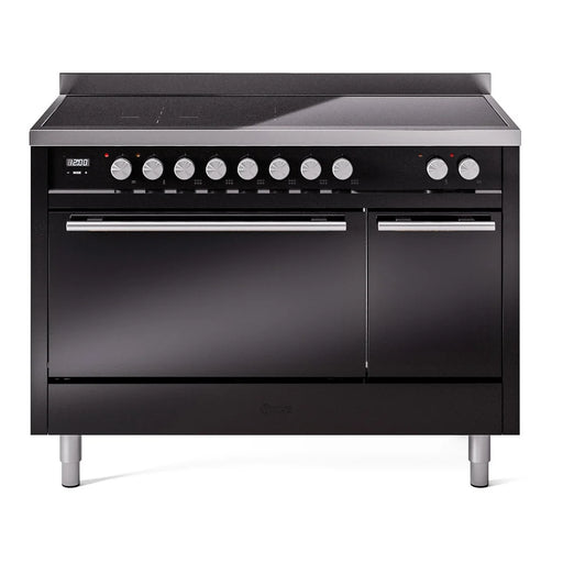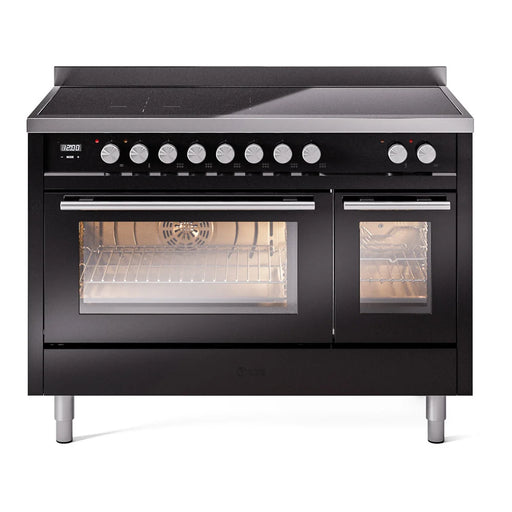 ILVE Professional Plus II 48" Induction Freestanding Range in Glossy Black with Stainless Steel Trim, UPI486QMPBK