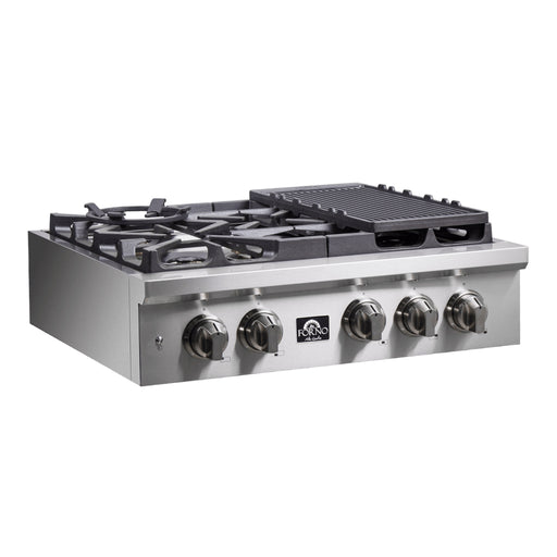 View full detailsForno 36" Pro-Style Gas Rangetop, 6 Sealed Brass Burners, Cast-Iron Grates, Griddle, FCTGS5751-36
