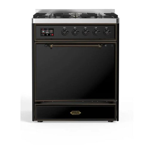 View full detailsILVE Majestic II 30" Dual Fuel Freestanding Range in Glossy Black with Brass Trim, UM30DNE3BKG