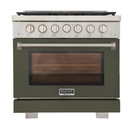 Kucht Professional 36" 5.2 cu ft. Natural Gas Dual Fuel Range with Olive Green Door and Silver Knobs, KDF362-OG