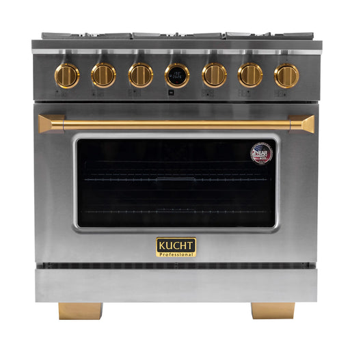 Kucht 36" 5.2 cu ft. Natural Gas Dual Fuel Range with Gold Accents, KXP36-GL