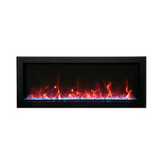 Amantii Fireplaces set the standard with the Amantii Panorama 40" Slim Built-in Indoor/Outdoor Linear Electric Fireplace, delivering a true trimless, full-view display and flexible indoor/outdoor installation. The Panorama Slim Series offers maximum design freedom with clean-face finishing right to the glass or the use of the included black metal surround—your choice for your space.