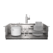 Elevate your kitchen with the MultiSINK Workstation a sculpted centerpiece built for beauty and performance. Its 3-level design and 10" deep basin create seamless zones for prep, rinse, and cleanup. The stainless steel pivoting waterfall faucet offers three spray modes Boost Blade, aerated flow, and rinse while the integrated glass washer keeps drinkware spotless. A double-sided bamboo cutting board, stainless steel colander, and four heavy-duty roll-up grids adapt to your workflow. Two removable drying grilles sit elegantly on the deck, adding utility without clutter. With dual-mount flexibility, cUPC certification, and precision-crafted corners, MultiSINK blends timeless design with everyday efficiency.