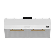 Forno Bari Espresso 30" 600 CFM Under Cabinet Range Hood in White, LED Lighting, with Antique Brass Handles, FRHUC5255-30WHT