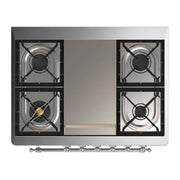 They are true gems of professionalism, designed for the kitchen in your home. They are available in a range of selected colors or in RAL Classic shades on request, combined with fine metallic finishes. Offered in a wide range of sizes (from 30 to 60 inches), they offer multiple set-up possibilities. There are three cooktop (hob) configurations to choose from: dual gas burners or fry top while the induction models are available up to the 40″ size.