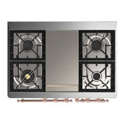 They are true gems of professionalism, designed for the kitchen in your home. They are available in a range of selected colors or in RAL Classic shades on request, combined with fine metallic finishes. Offered in a wide range of sizes (from 30 to 60 inches), they offer multiple set-up possibilities. There are three cooktop (hob) configurations to choose from: dual gas burners or fry top while the induction models are available up to the 40″ size.